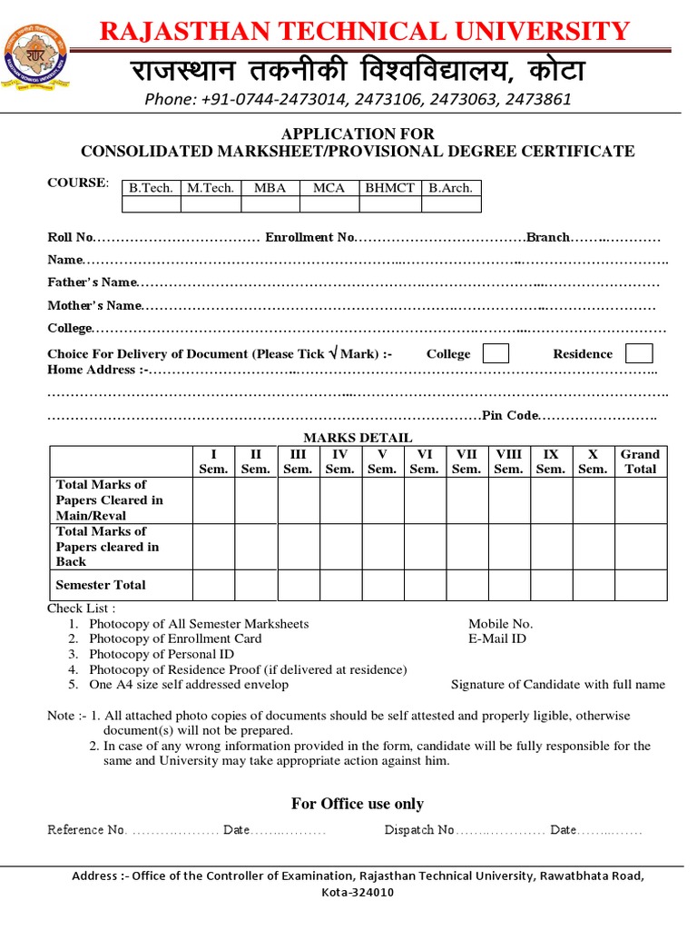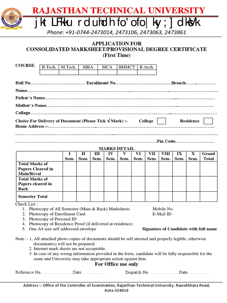 B Tech Rtu Marksheet Format