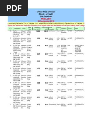 Moh Medicines Price List For Official Use As On 1st Of Sep 2016